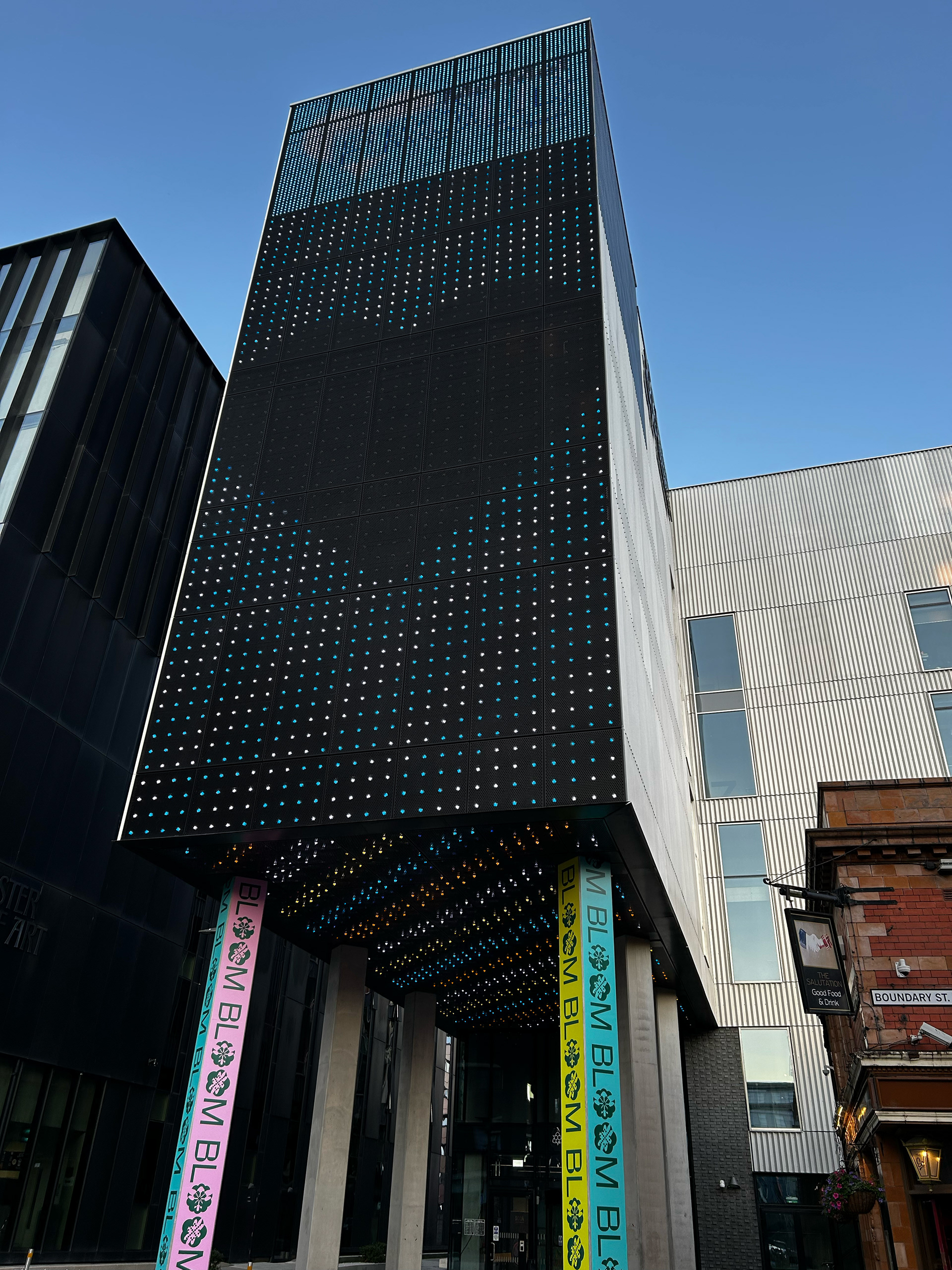 Animation created for McrMetProud week, a celebratory week for staff at the university, displayed on the SODA building (School of Digital Arts).
