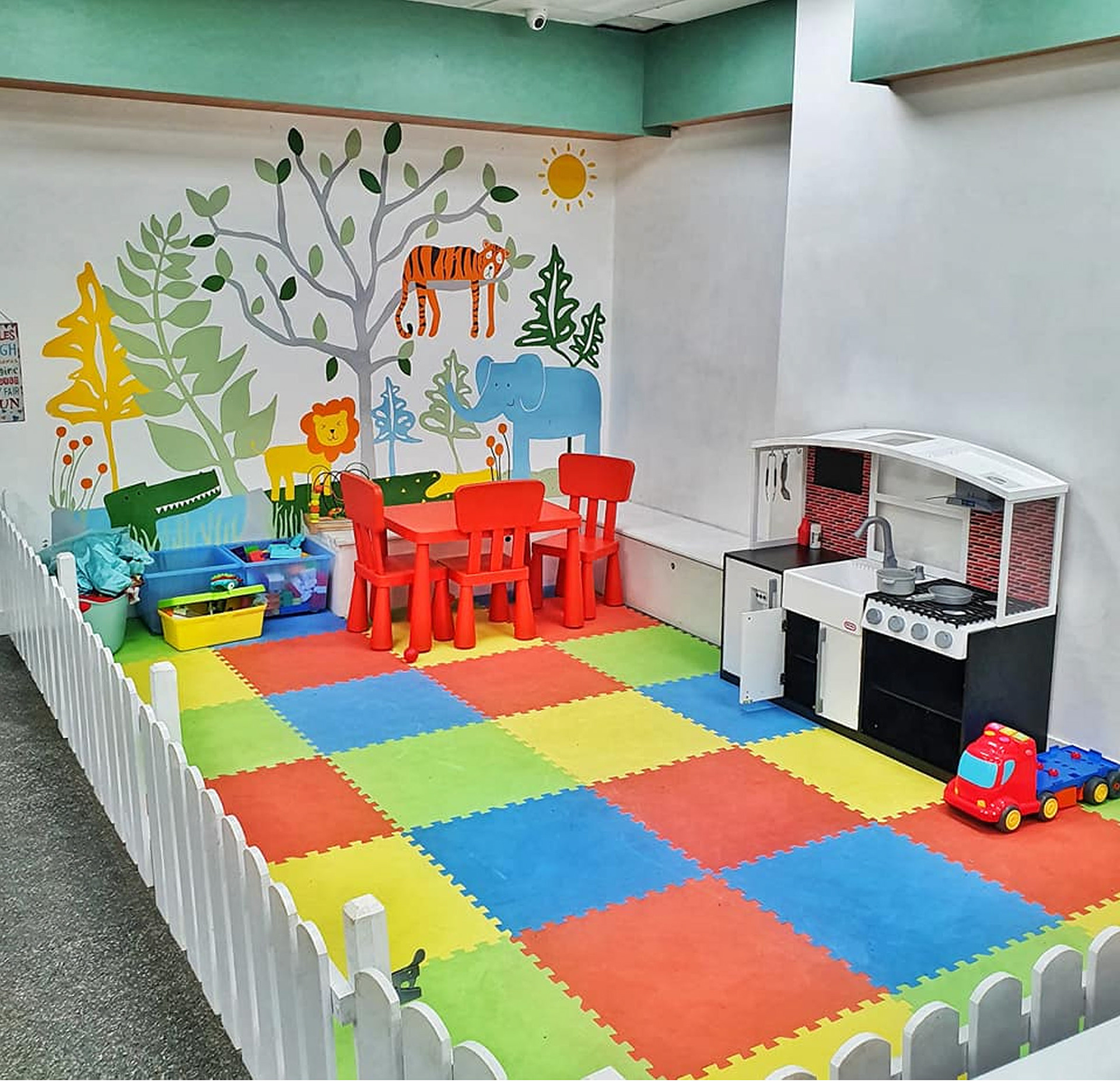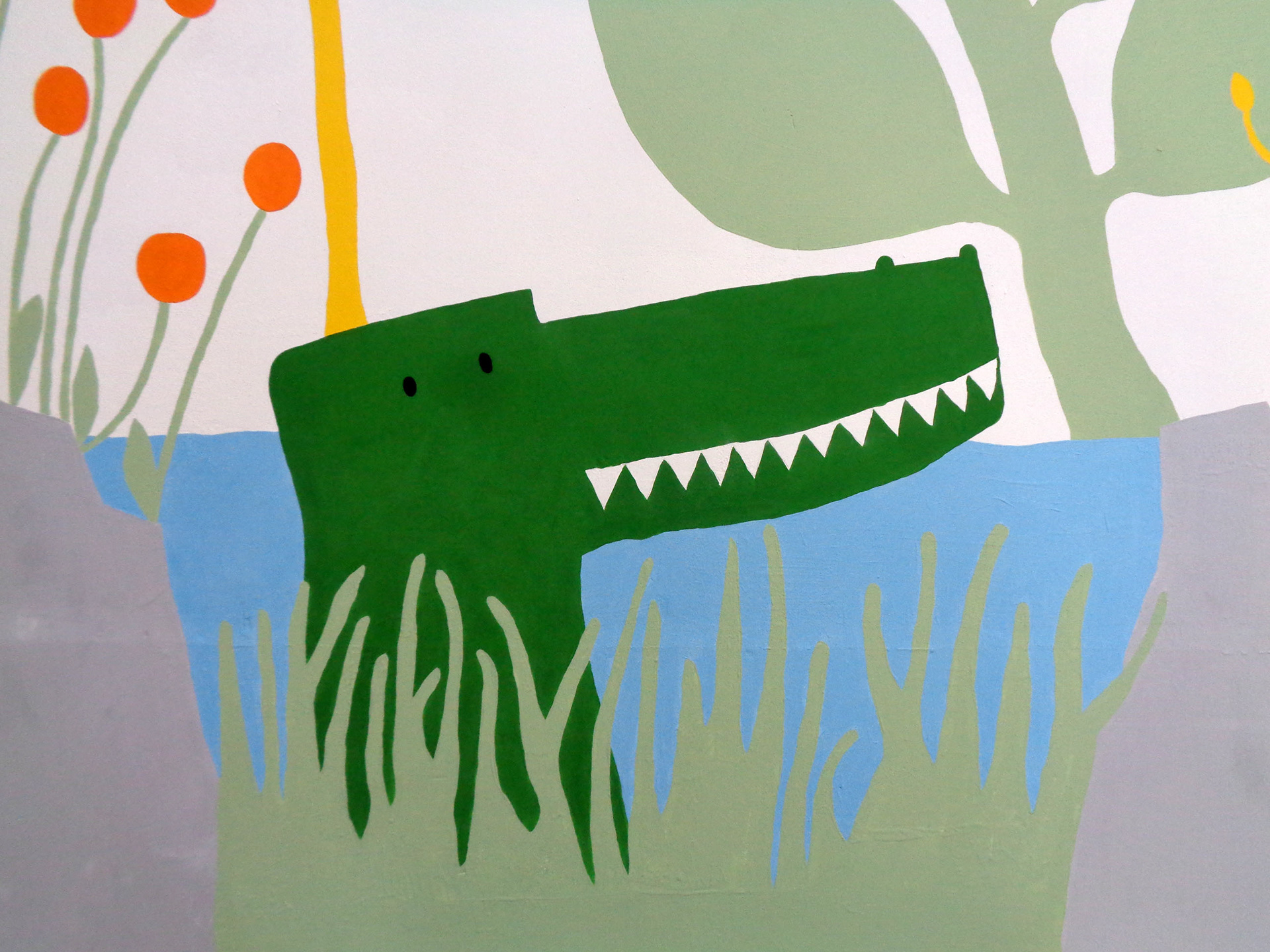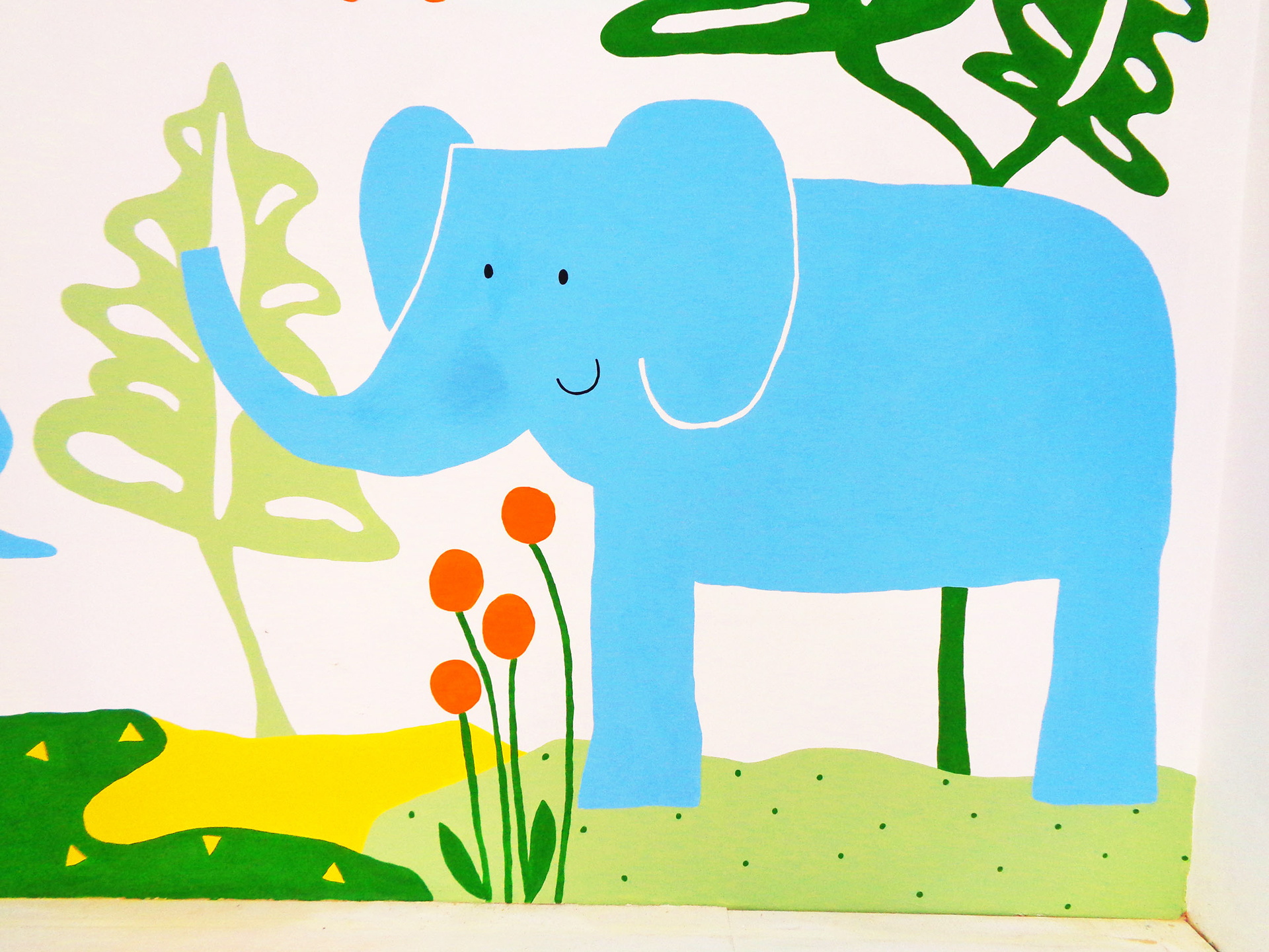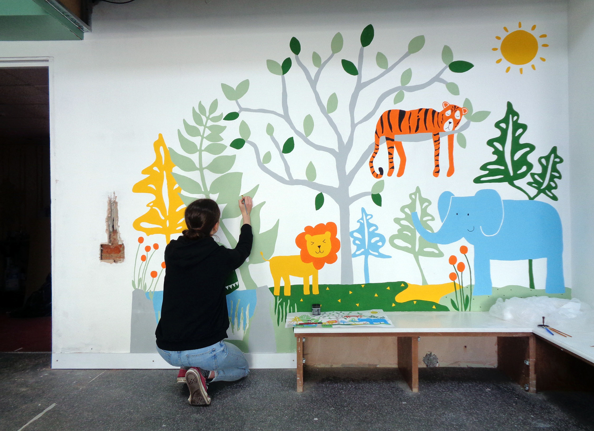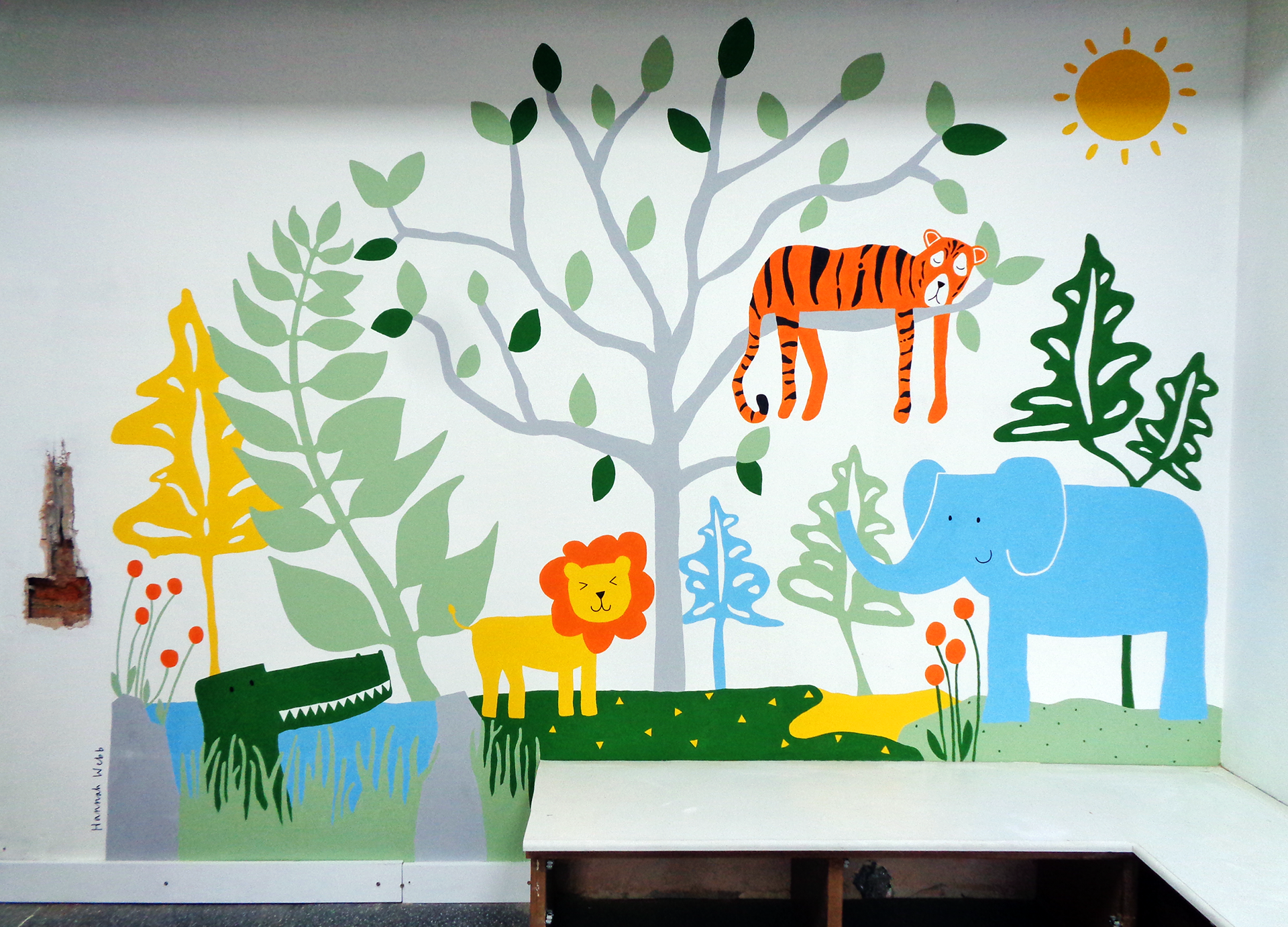 Painted mural for the play area of the Honeypot cafe in Monton.